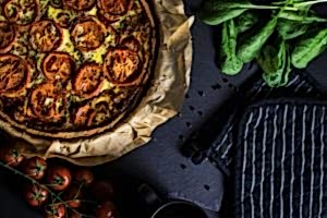 Domates ve jambonla, fontina ve provolone peyniriyle hazırlanan lezzetli bir tabak.